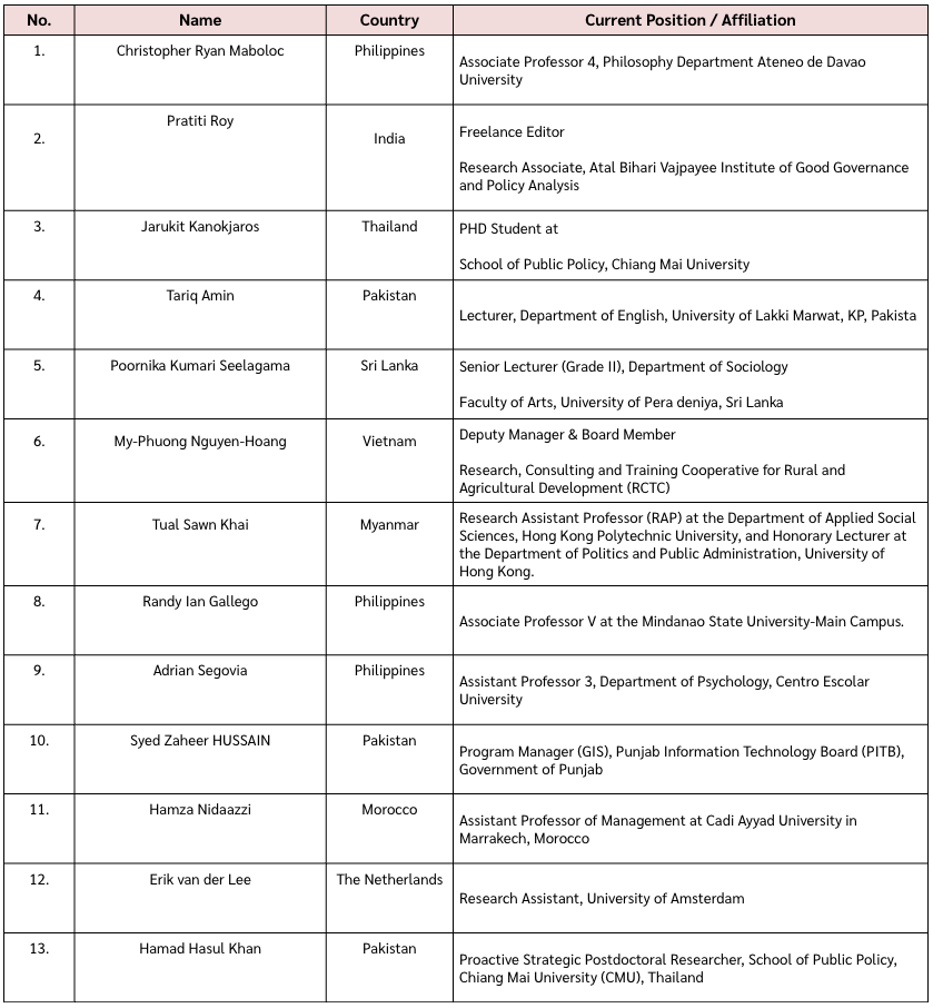 This year, the organizing committee comprising the HOPE SEA (Humanitarian Observatory for Policy and Education in Southeast Asia) at School of Public Policy at Chiang Mai University (CMU), the Centre of Gender and Forced Displacement at Asian Institute of Technology (AIT), and Faculty of Journalism and Mass Communication at Thammasat University (TU) faced an incredibly difficult task. We received over 800 applications from passionate researchers, practitioners, and scholars across the globe.